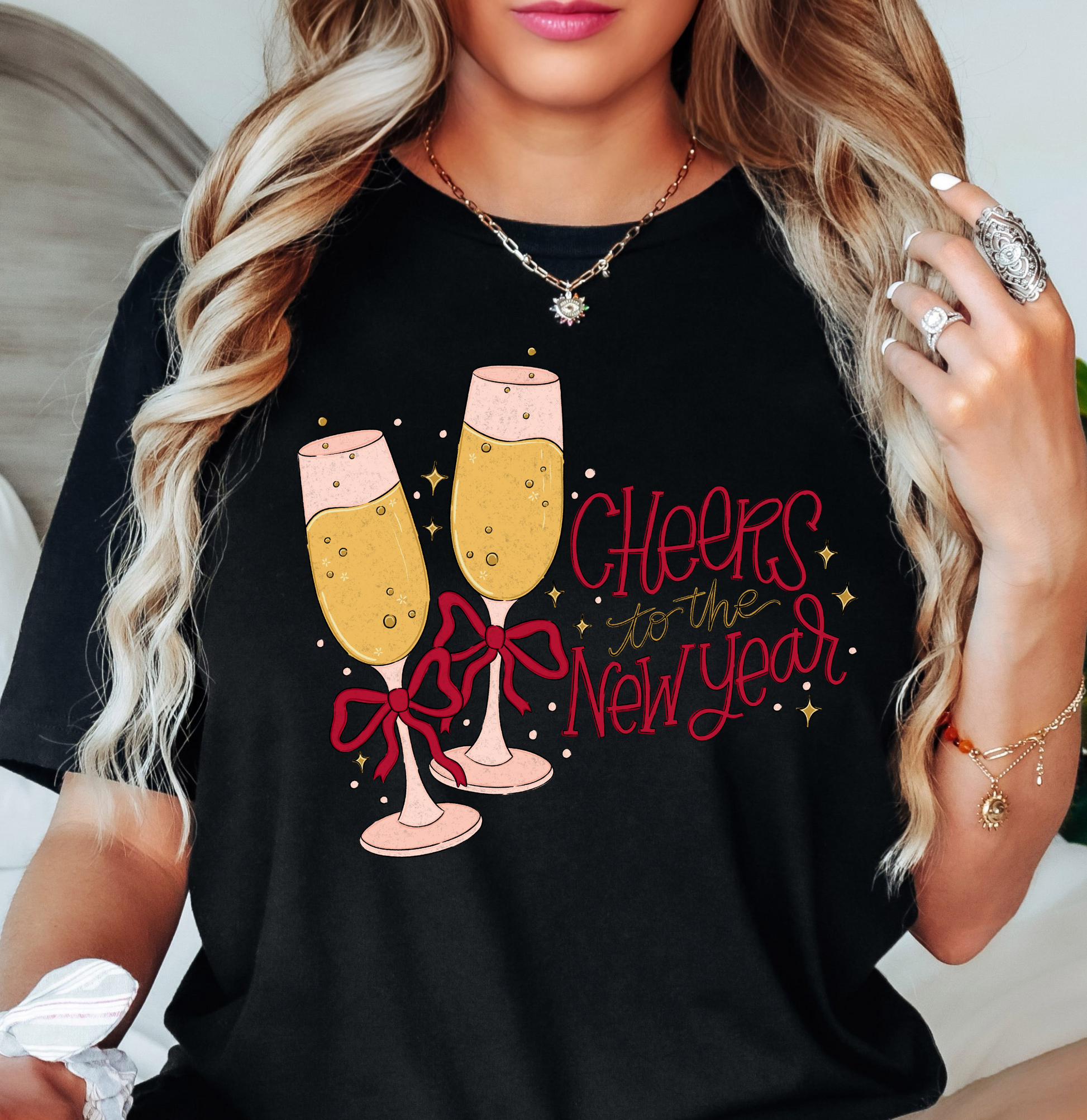 Champagne Cheers To New Year Tee | New Year Magic Collection | Unisex Pre-Shrunk T-Shirt