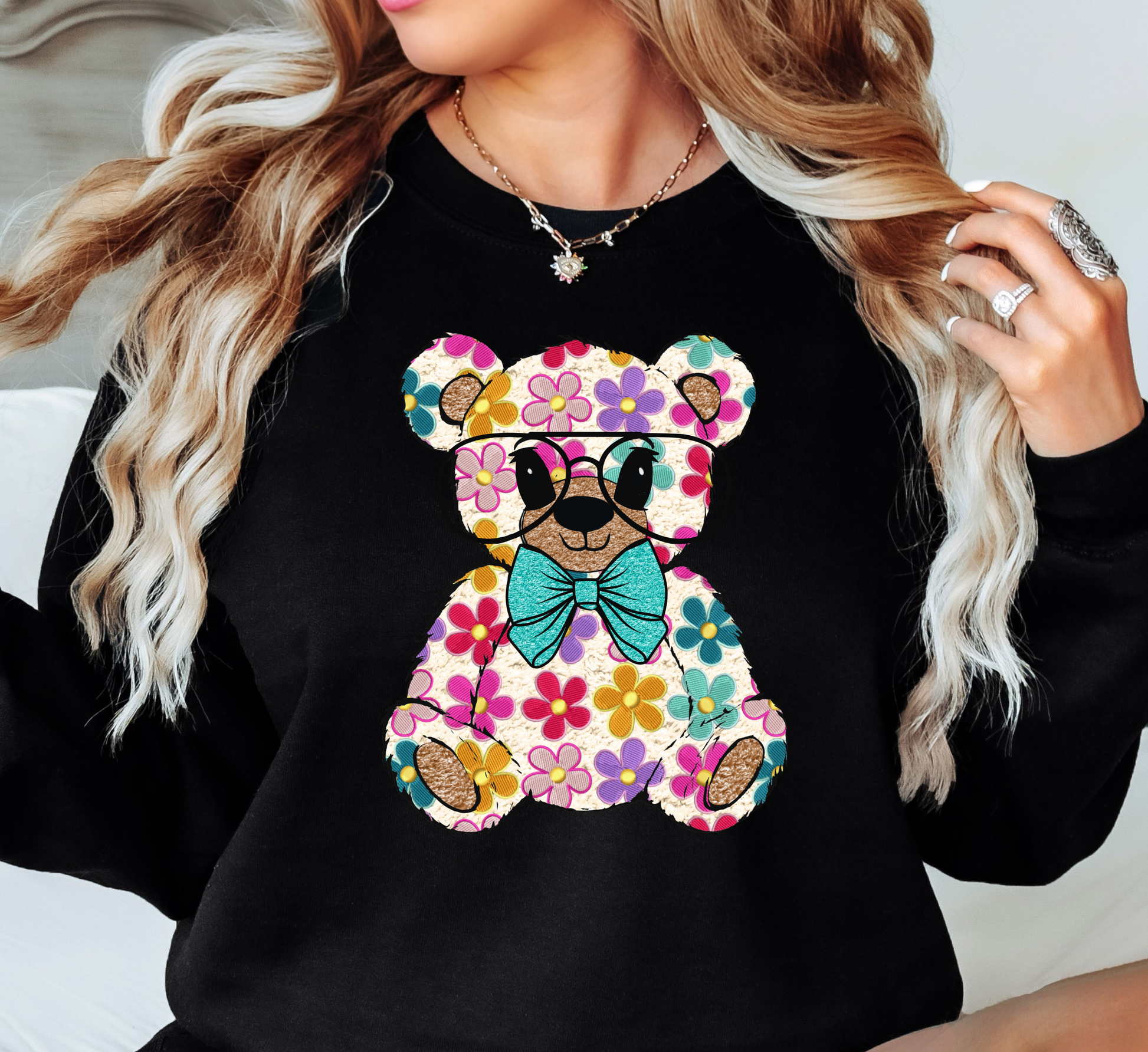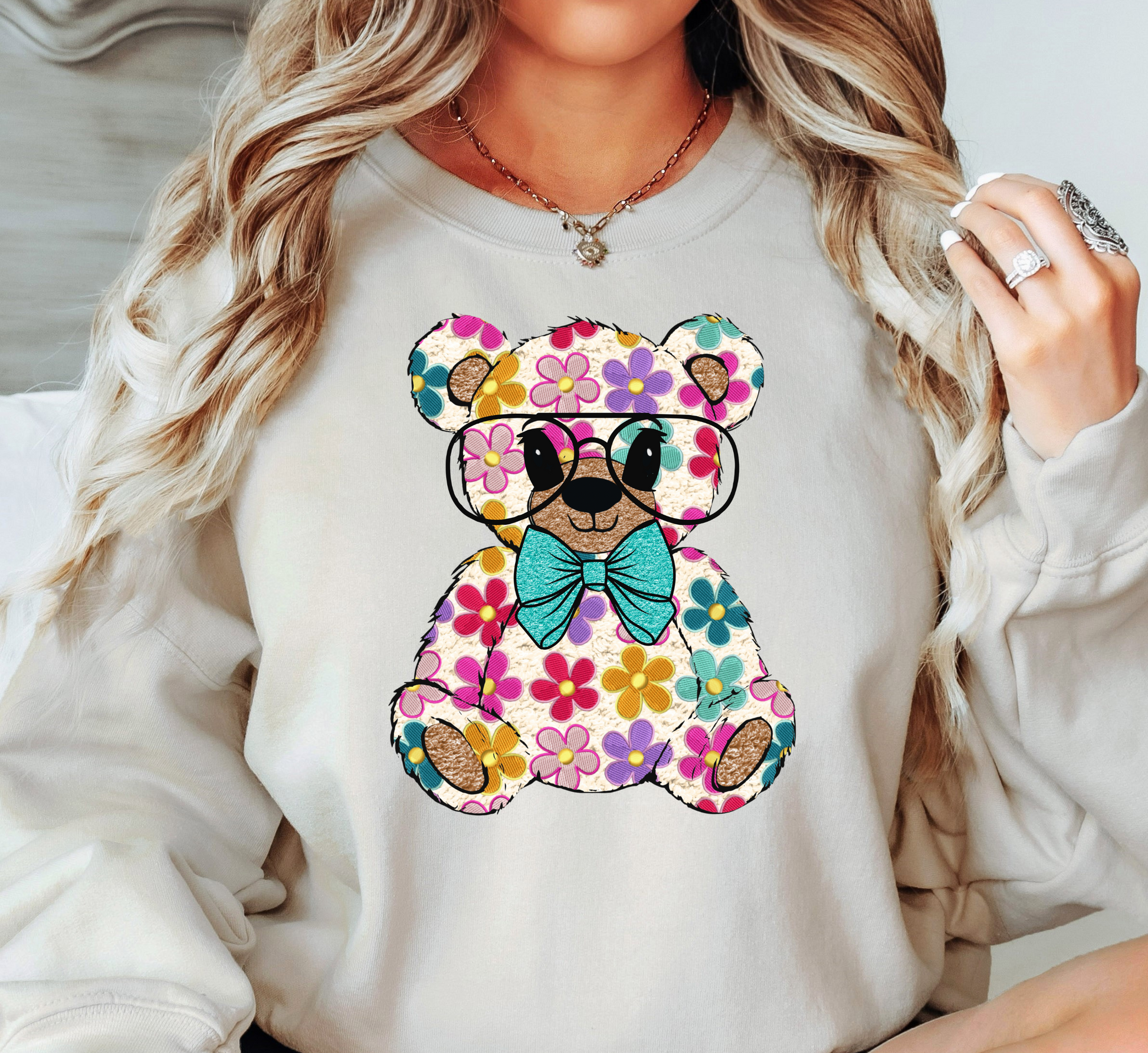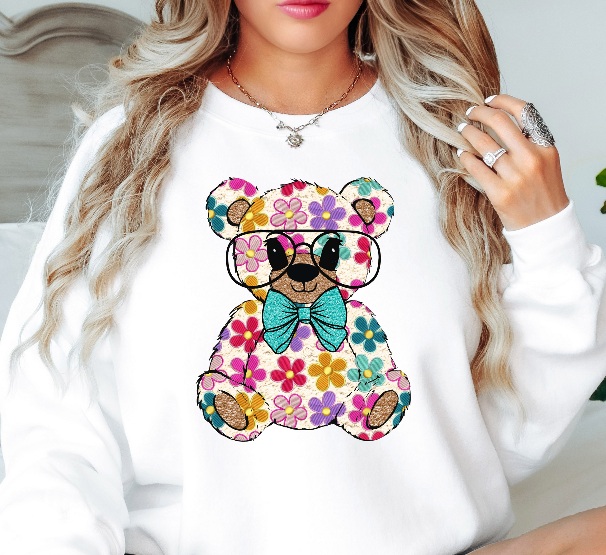 Floral Daisy Bear Sweatshirt | Hoppin' Into Spring Collection | Unique Gifts for Family Friends