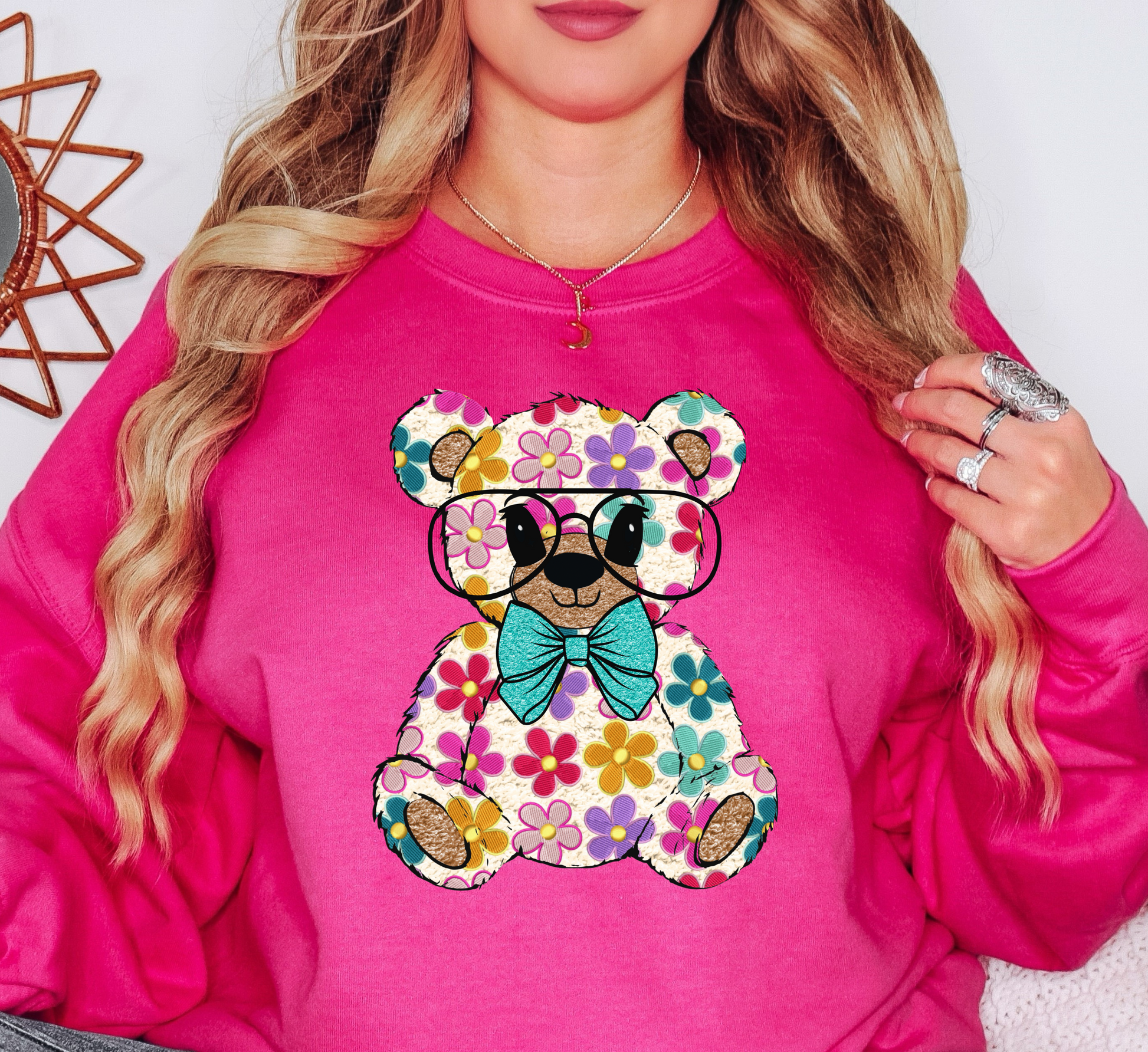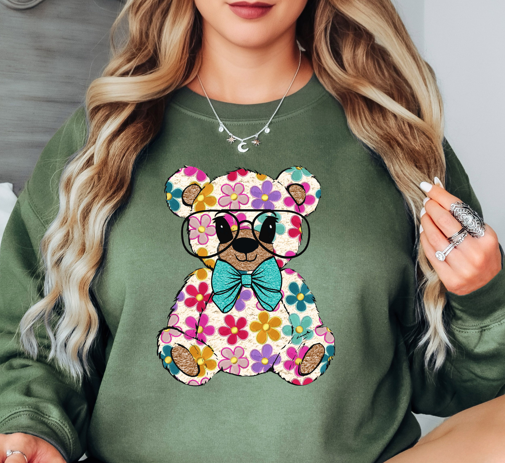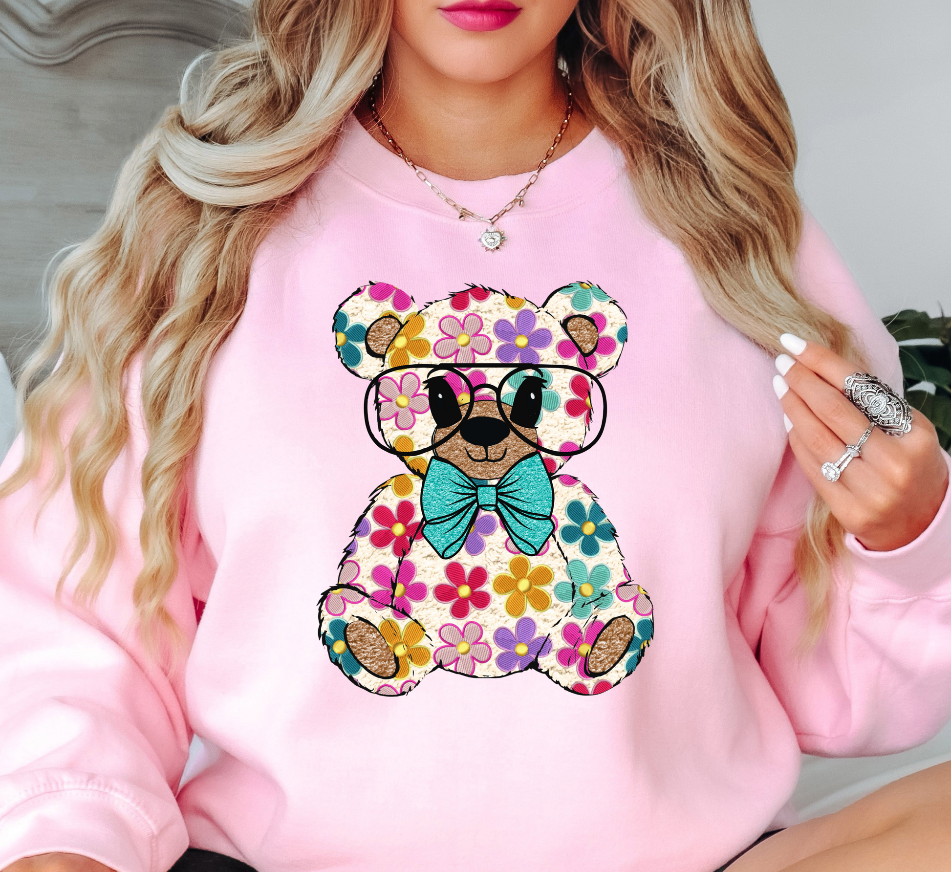 Floral Daisy Bear Sweatshirt | Hoppin' Into Spring Collection | Unique Gifts for Family Friends