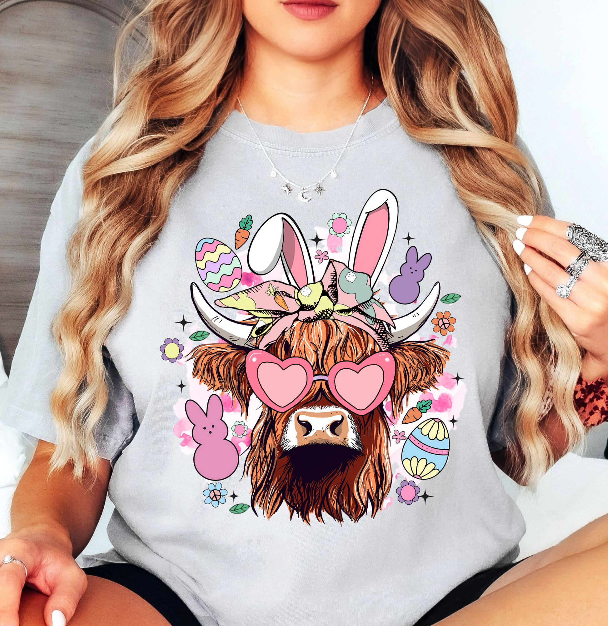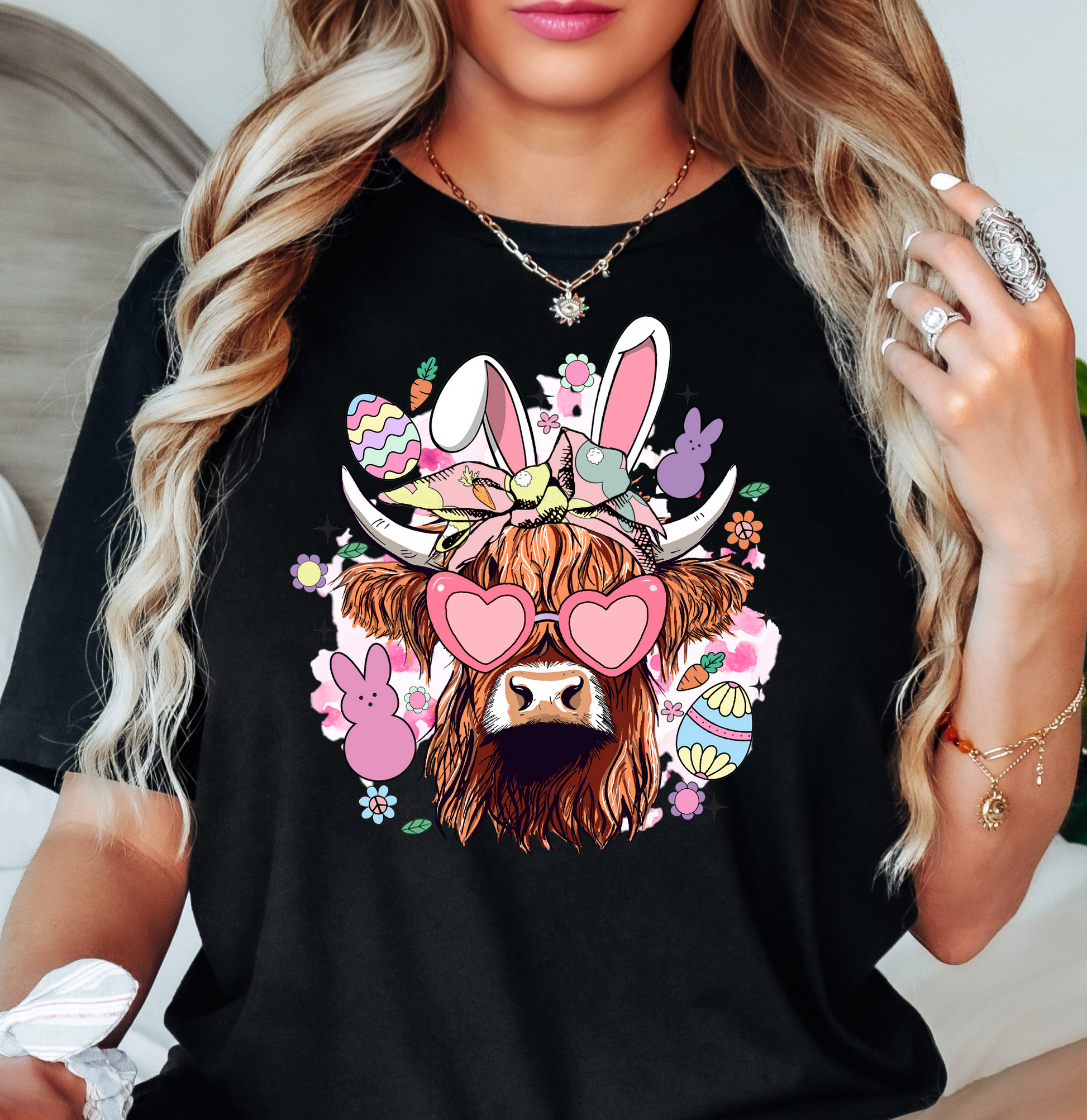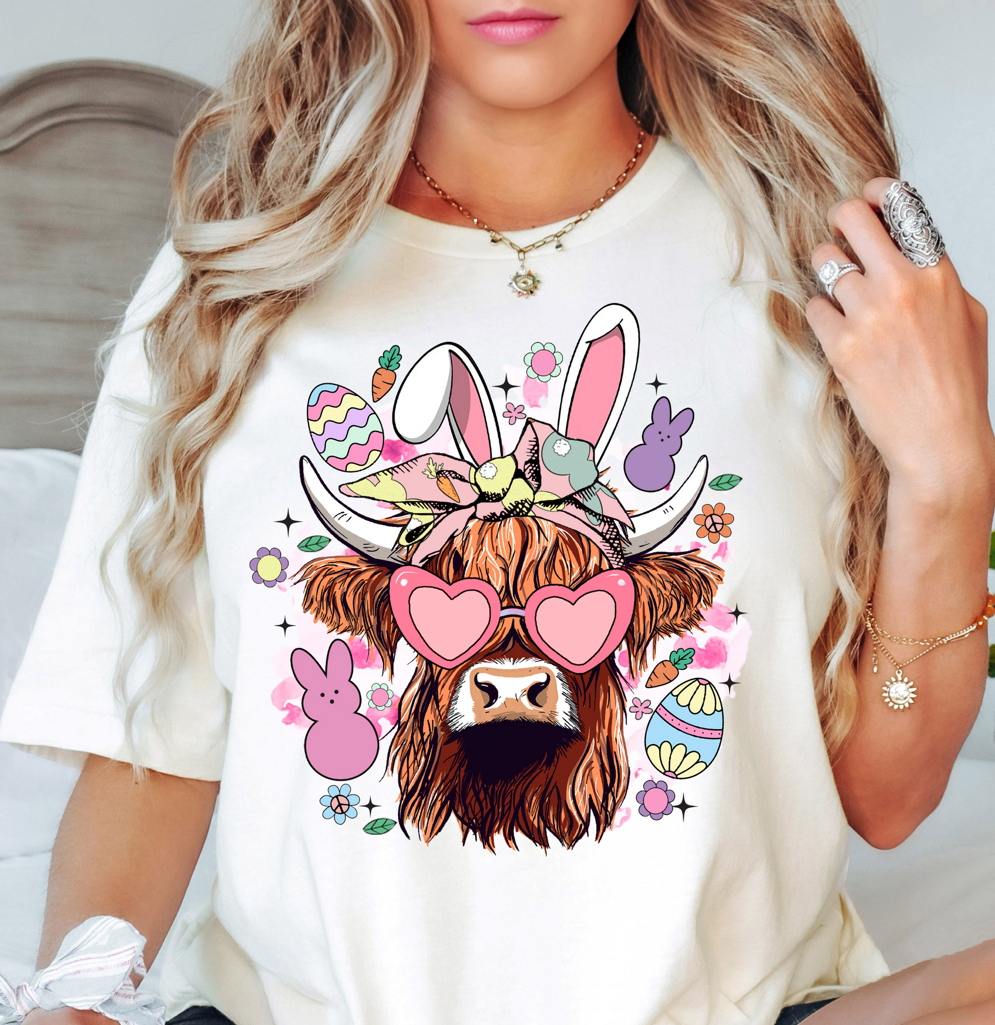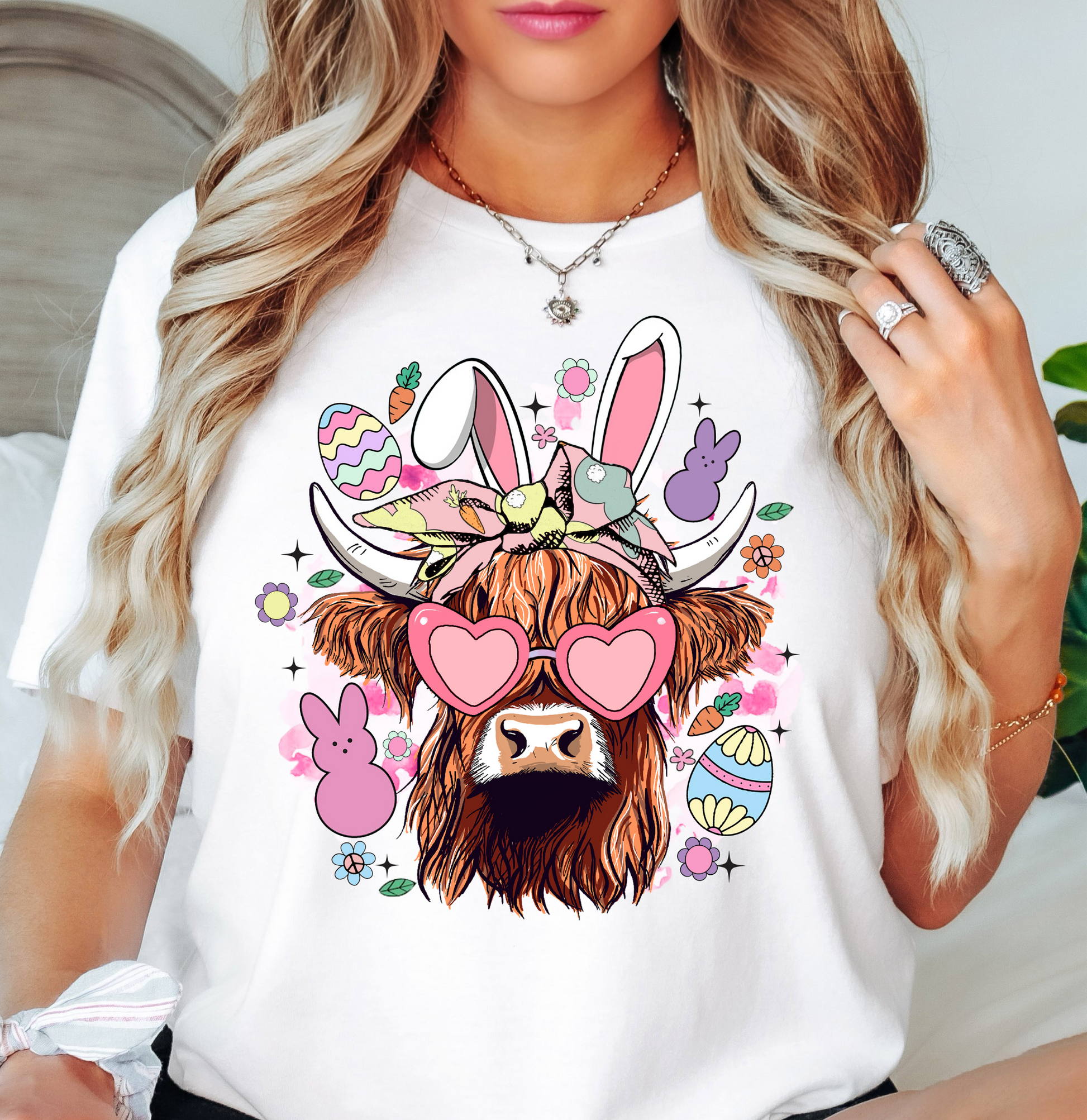 Highland Cow Bunny Tee | Hoppin' Into Spring Collection | Unisex Pre-Shrunk T-Shirt