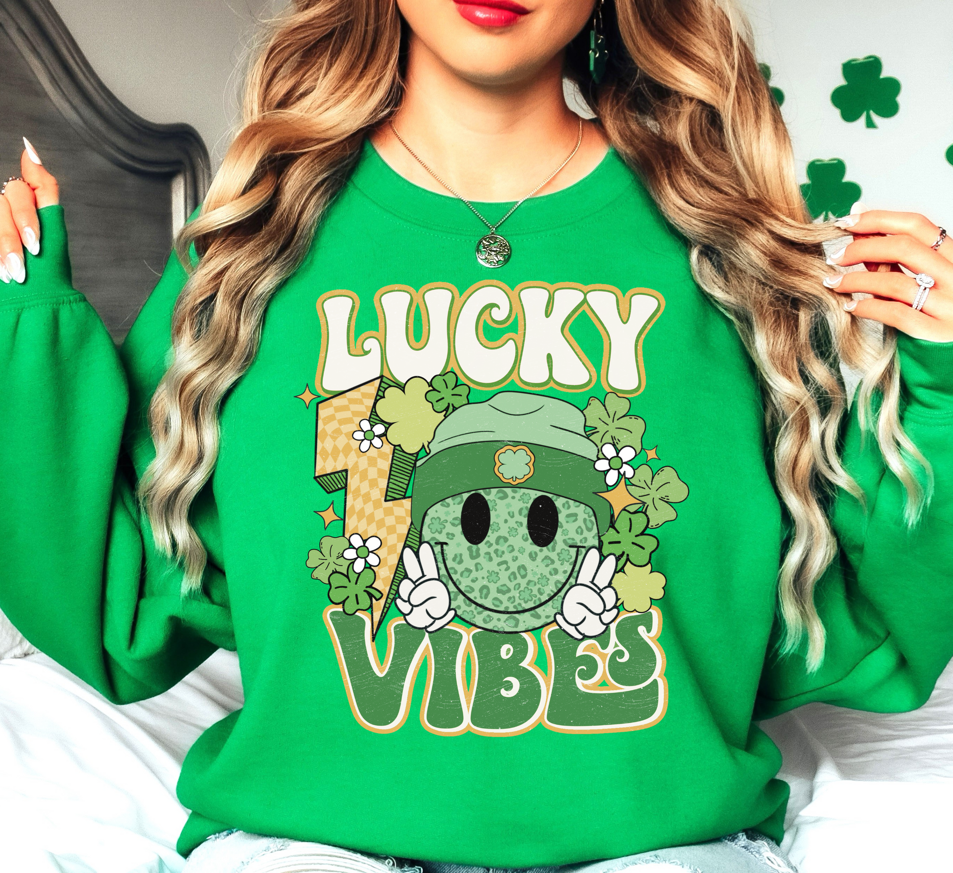 Retro Lucky Vibes Sweatshirt | Feeling Lucky Collection | Unique Gifts for Family Friends