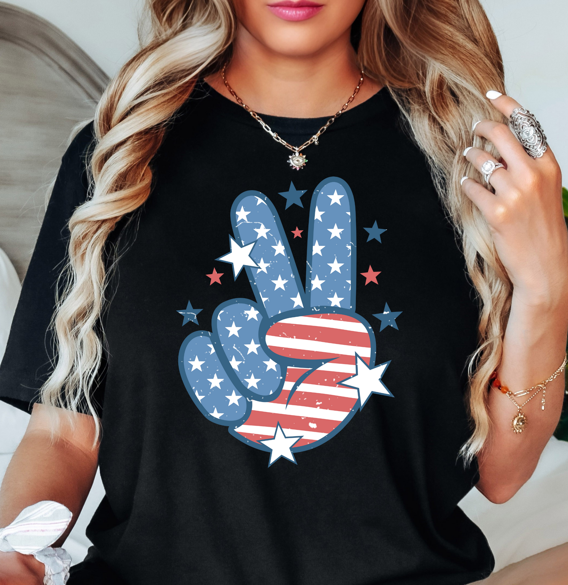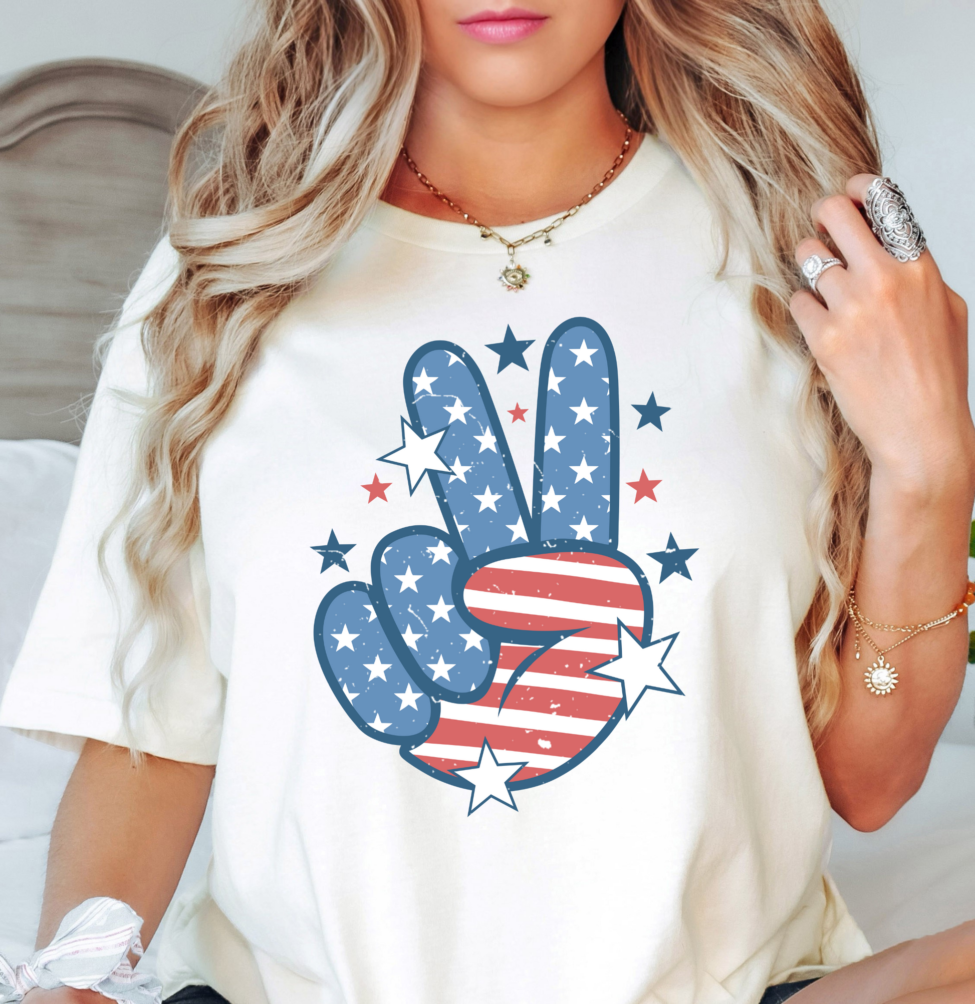 USA Peace Hand Tee | Stars and Stripes Collection | Unisex Pre-Shrunk T-Shirt